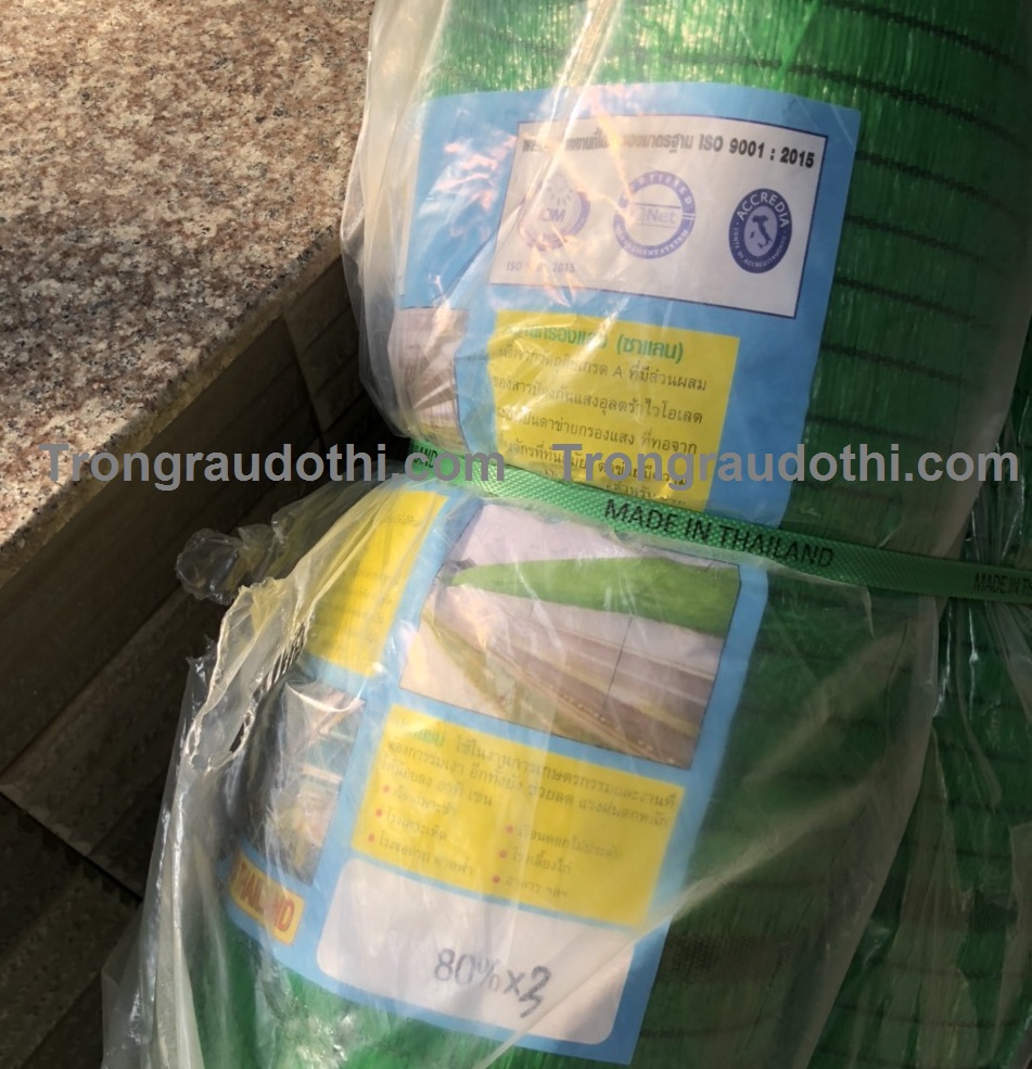 Lưới che nắng Thái Lan kích thước 3M x 50M, độ che phủ 80% sợi xanh chỉ đen. Thương hiệu Sunflower độ bền trên 5 năm