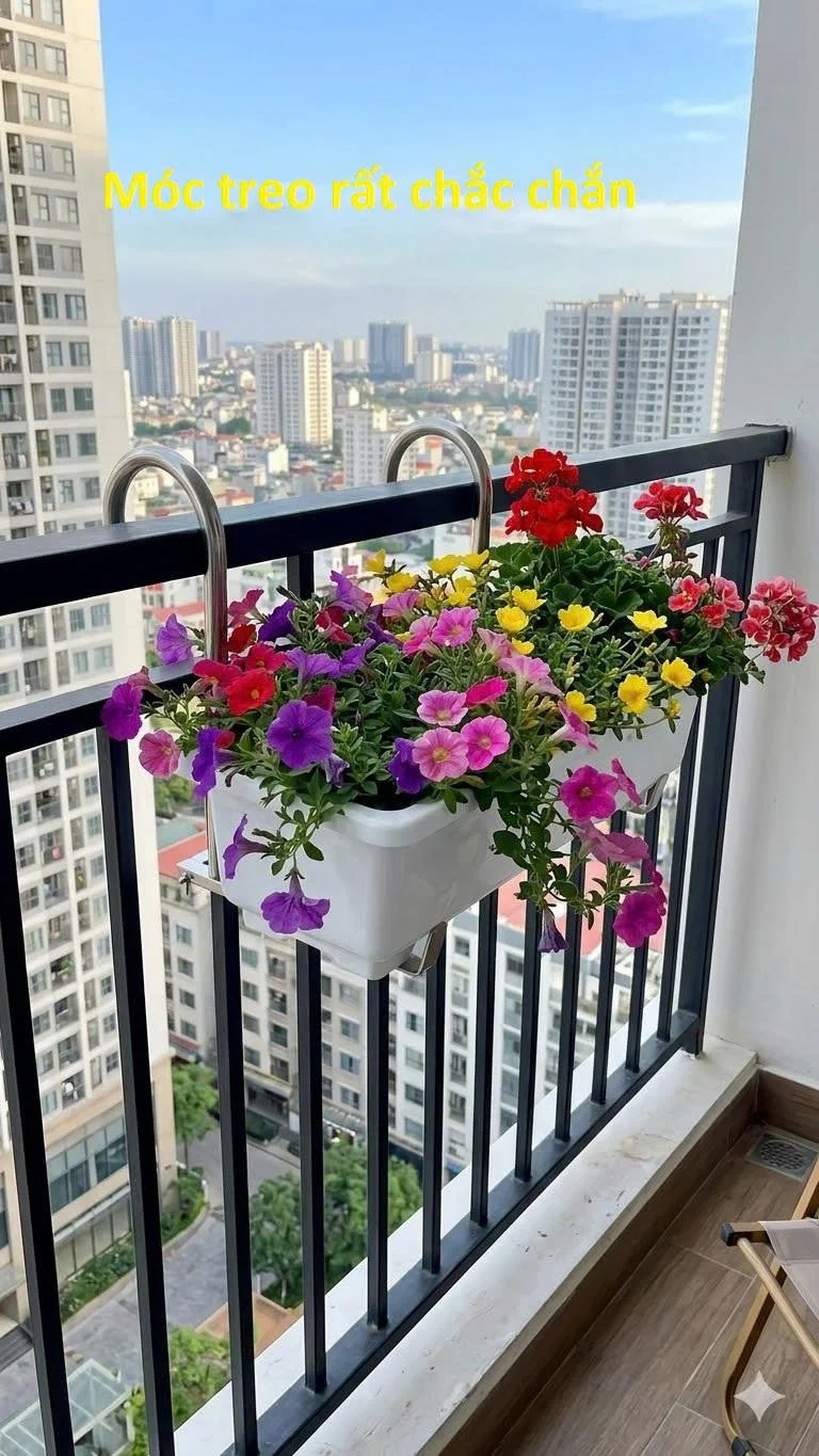 Móc treo chậu trồng cây ban công là giải pháp tuyệt vời giúp bạn có thể phủ xanh ban công một cách an toàn, đẹp mắt, vững chãi. Móc được làm bằng inox sáng bón